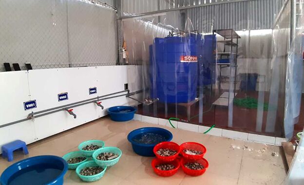 Các cơ sở chế biến hàu ở xã Đông Xá được trang bị thiết bị lọc nước hiện đại