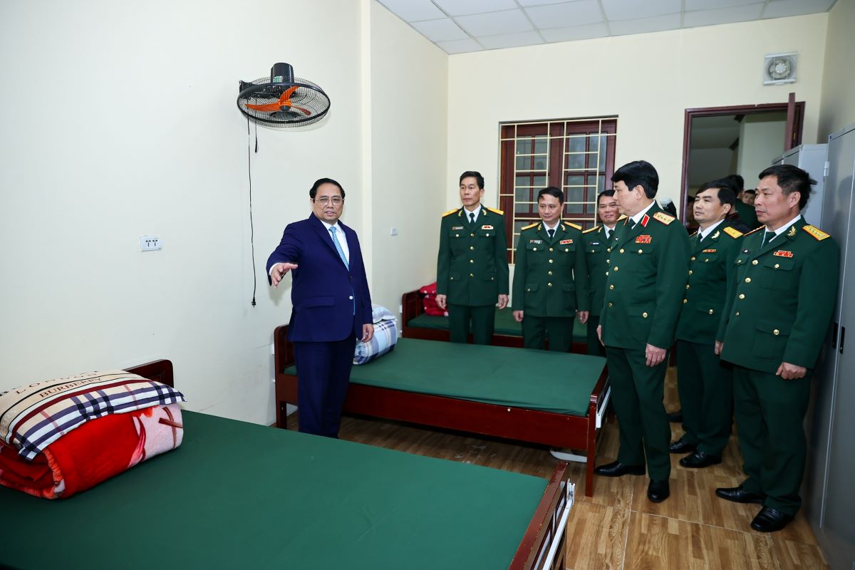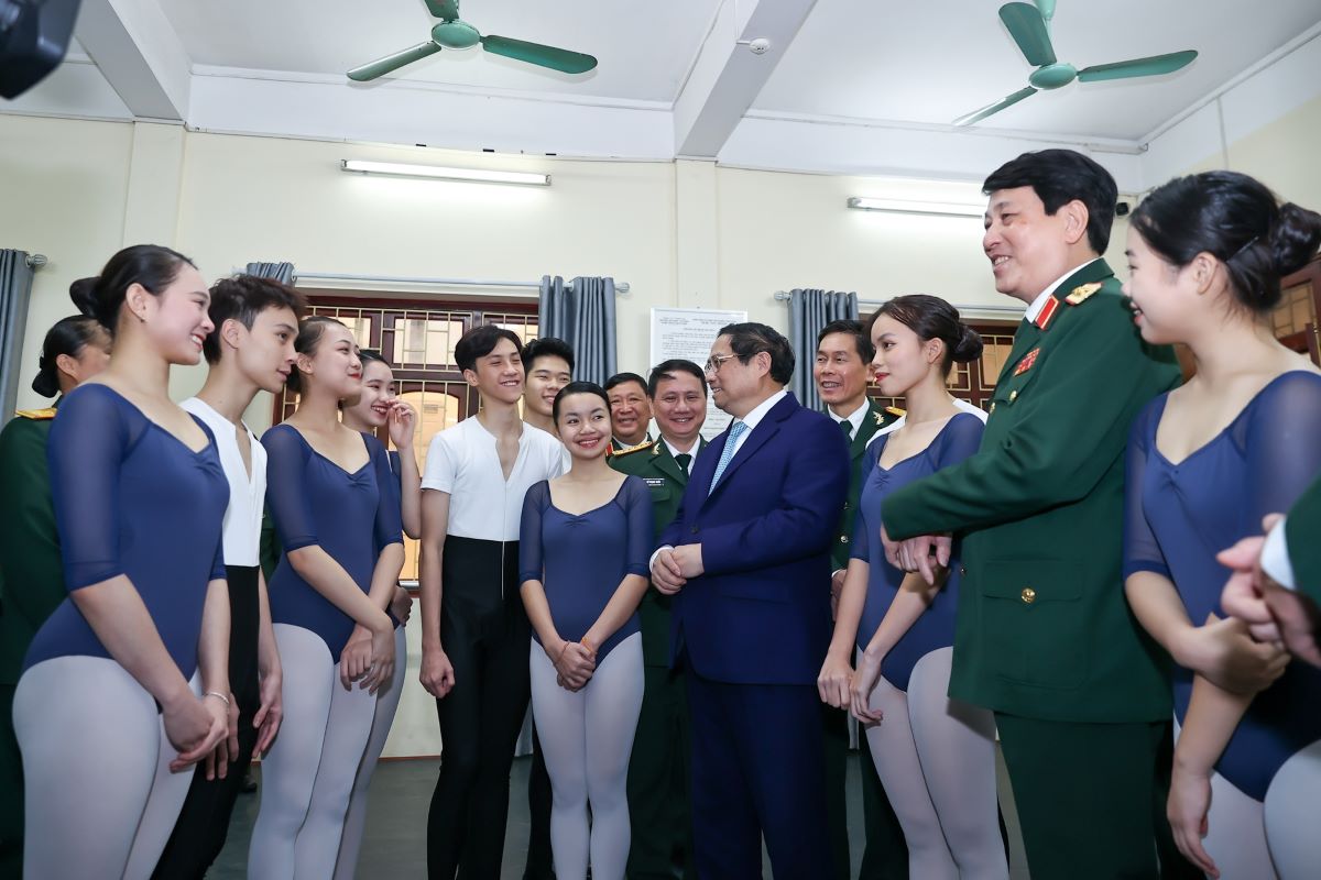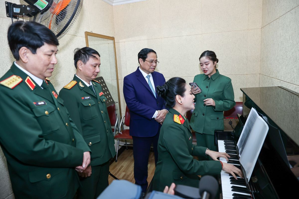 Thủ tướng thăm các phòng chức năng và trò chuyện với cán bộ, giảng viên, học viên, chiến sĩ Trường Đại học Văn hóa nghệ thuật Quân đội