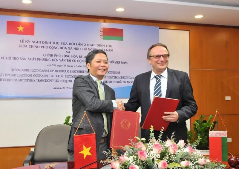Nghị định thư sửa đổi lần 2 Nghị định thư giữa Chính phủ Việt Nam và Chính phủ Cộng hòa Belarus về hỗ trợ sản xuất phương tiện vận tải có động cơ trên lãnh thổ Việt Nam chính thức được ký kết ngày 03/12/2020.