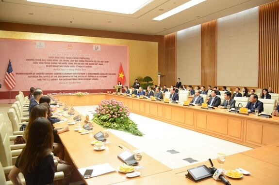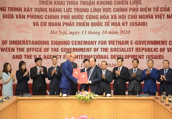 VNHN – Chiều 13-10, tại trụ sở Văn phòng Chính phủ (VPCP) đã diễn ra lễ ký kết Biên bản ghi nhớ về triển khai thỏa thuận khung chiến lược Chương trình xây dựng năng lực trong lĩnh vực Chính phủ điện tử của Việt Nam giữa VPCP nước CHXHCN Việt Nam và Cơ quan Phát triển Quốc tế Hoa Kỳ (USAID).