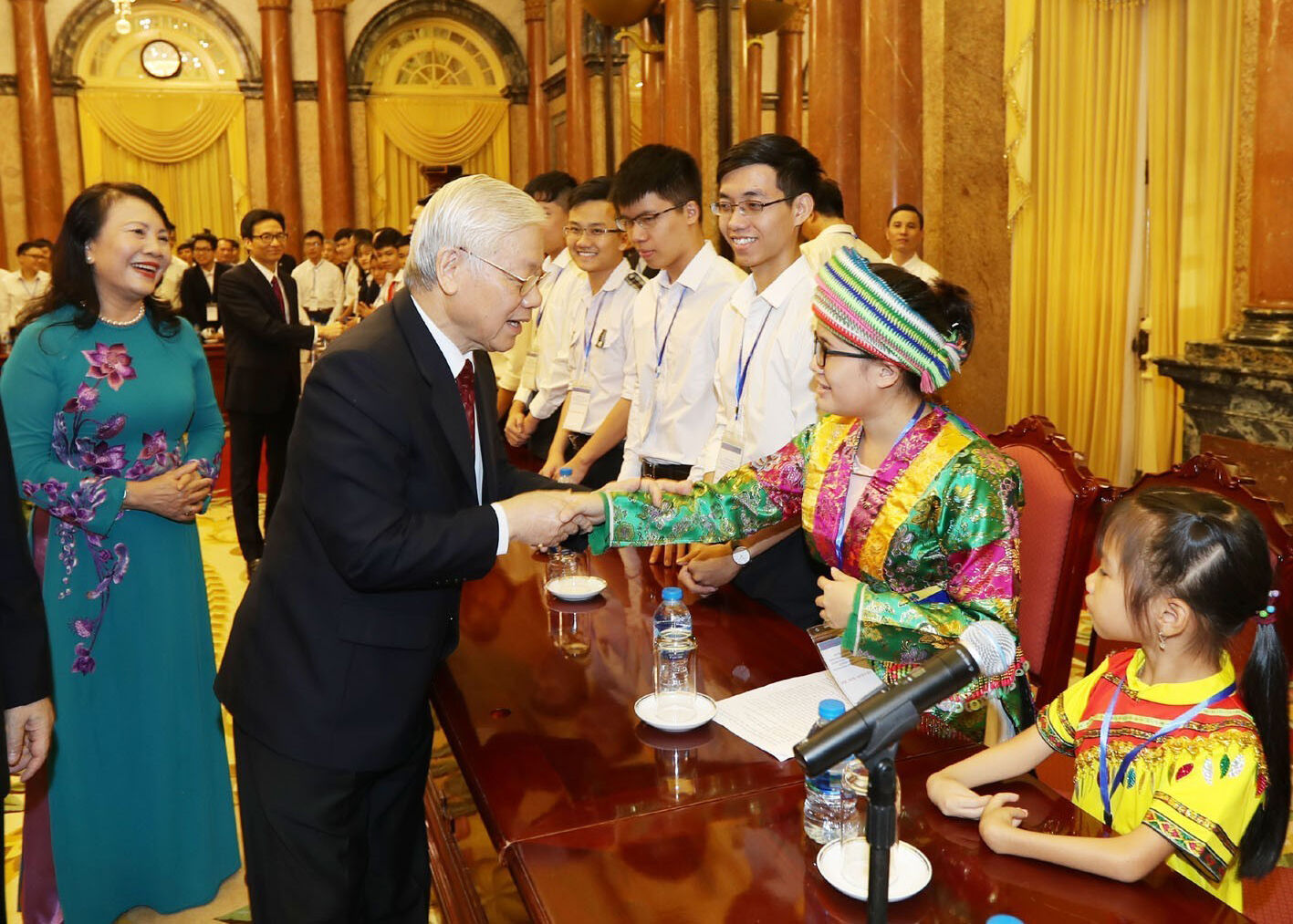 Tổng Bí thư, Chủ tịch nước Nguyễn Phú Trọng tiếp đoàn học sinh, sinh viên tiêu biểu, xuất sắc ngành giáo dục