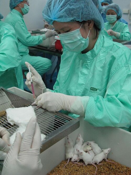 Tiêm thử nghiệm trên chuột (Ảnh: nhandan.com.vn)
