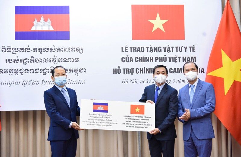800 máy thở, 2 triệu khẩu trang y tế và 300.000 khẩu trang N95 đã được Chính phủ và nhân dân Việt Nam hỗ trợ gửi tới Chính phủ và nhân dân Campuchia để ứng phó với dịch COVID-19. Thứ trưởng Bộ Ngoại giao Nguyễn Quốc Dũng bày tỏ sự chia sẻ và cảm thông sâu sắc của Chính phủ và nhân dân Việt Nam đối với Chính phủ và nhân dân Campuchia trước những diễn biến phức tạp tại nước bạn.