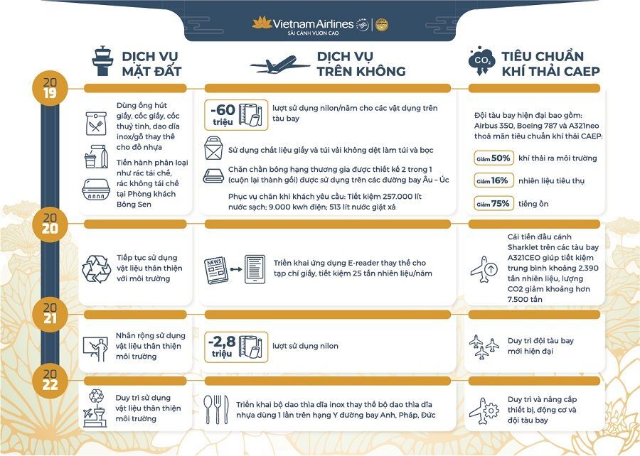 Từ năm 2019, Vietnam Airlines đã giảm hơn 60 triệu túi nylon mỗi năm nhờ ngưng sử dụng túi nylon bọc ngoài nhiều vật tư, vật phẩm trên máy bay.