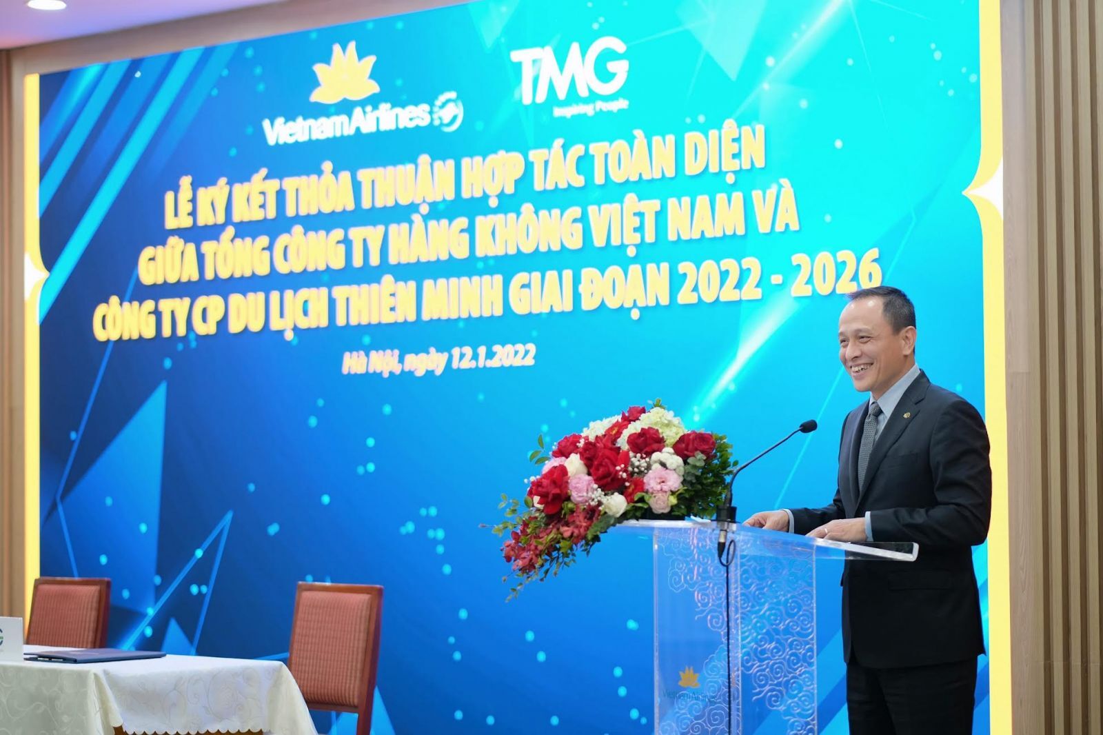 Vietnam Airlines và Tập đoàn Thiên Minh (TMG) đã chính thức ký kết thỏa thuận hợp tác toàn diện giai đoạn 2022-2026 để phát triển hoạt động trong lĩnh vực hàng không và du lịch. Một trong những nội dung hợp tác nổi bật của hai bên là thẻ liên kết thương hiệu du lịch trọn gói giúp khách hàng dễ dàng lựa chọn sản phẩm phù hợp với nhu cầu, sở thích, đồng thời tiết kiệm thời gian và tối ưu chi phí.