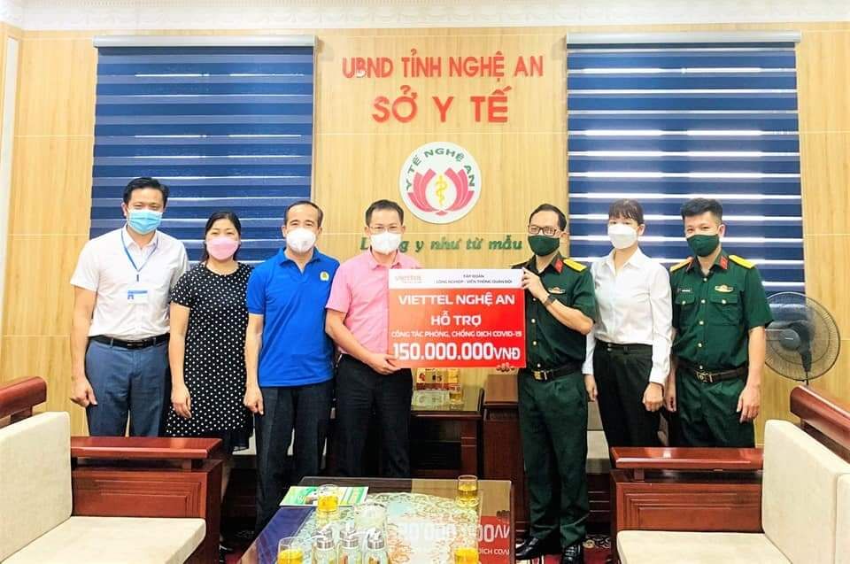 Do tình hình dịch COVID-19 hiện đang diễn biến rất phức tạp đã gây ảnh hưởng lớn đến kinh tế, đời sống của nhân dân và hoạt động sản xuất kinh doanh của các doanh nghiệp trên địa bàn tỉnh. Nhằm chia sẻ với đội ngũ y, bác sĩ ngành y tế Nghệ An, nơi tuyến đầu phòng, chống dịch COVID-19. Viettel Nghệ An hỗ trợ 150 triệu đồng, đoàn cũng gửi lời chúc đội ngũ y, bác sỹ đã không quản ngày đêm vất vả gồng mình trong công tác phòng chống dịch có nhiều sức khỏe hoàn thành xuất sắc nhiệm vụ, nhằm góp phần đẩy lùi dịch COVID-19 trên địa bàn tỉnh.