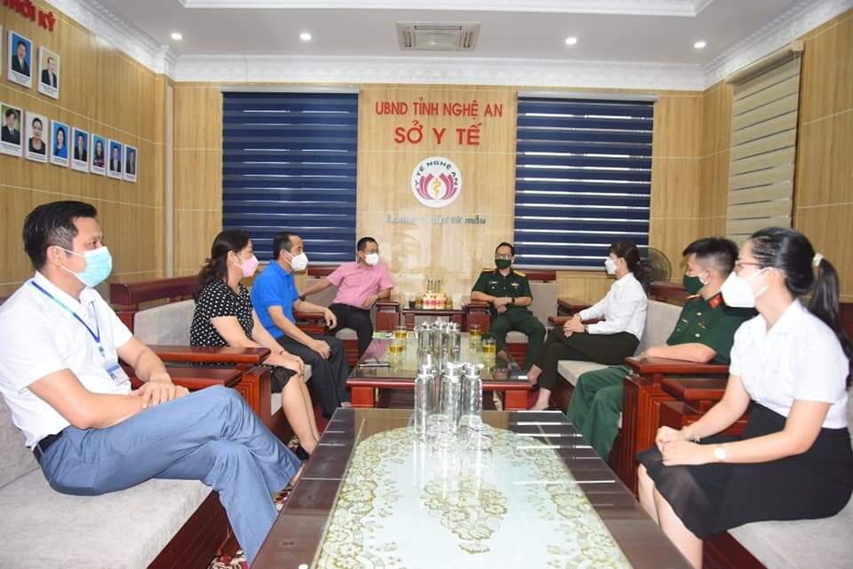 Sáng nay (10/08), tại Sở Y tế Nghệ An, Thiếu tá Nguyễn Cảnh Hòa - Giám đốc Viettel Nghệ An cùng các đồng chí trong đoàn đã đến thăm và tặng quà cho Sở Y tế Nghệ An trong công tác phòng chống dịch COVID-19. Tiếp đoàn có TS.BS Nguyễn Hữu Lê, PGĐ Sở Y tế ; đồng chí Phạm Quốc Dương, Chủ tịch Công đoàn ngành Y tế và các đồng chí Trưởng phó các phòng ban Sở Y tế.