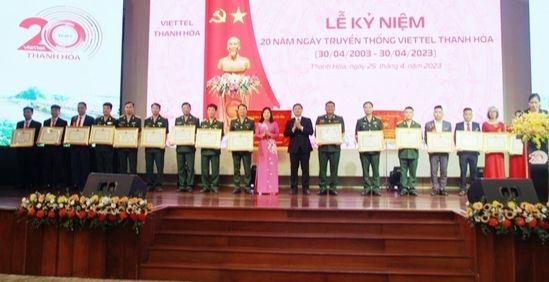 Nhân dịp này, các đồng chí lãnh đạo tỉnh đã trao Bằng khen của Chủ tịch UBND tỉnh cho 5 tập thể, 12 cá nhân có thành tích trong phong trào thi đua “Lao động giỏi, lao động sáng tạo”; lãnh đạo Tổng Công ty viễn thông Viettel trao Bằng khen của Tổng Giám đốc Tập đoàn cho tập thể Viettel Thanh Hóa và 31 cá nhân vì những đóng góp vào sự trưởng thành lớn mạnh của Tập đoàn và sự phát triển của đất nước./.