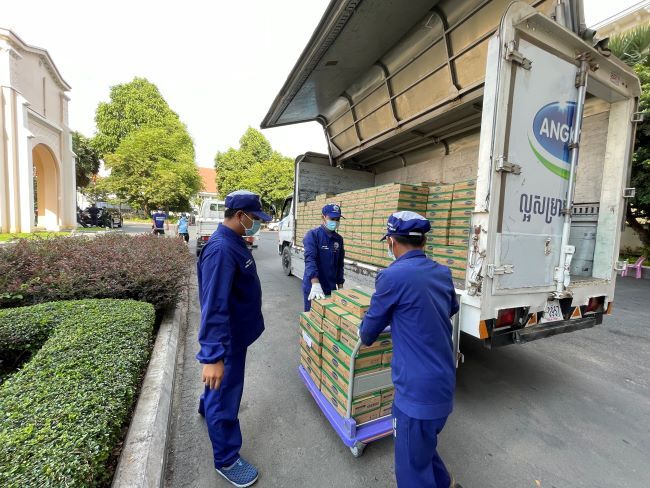 Angkormilk trao tận tay 1.000 thùng sữa cho đại diện chính quyền Phnom Penh để hỗ trợ cho người dân và trẻ em tại các “vùng đỏ” trong những ngày bị cách ly, phong tỏa.