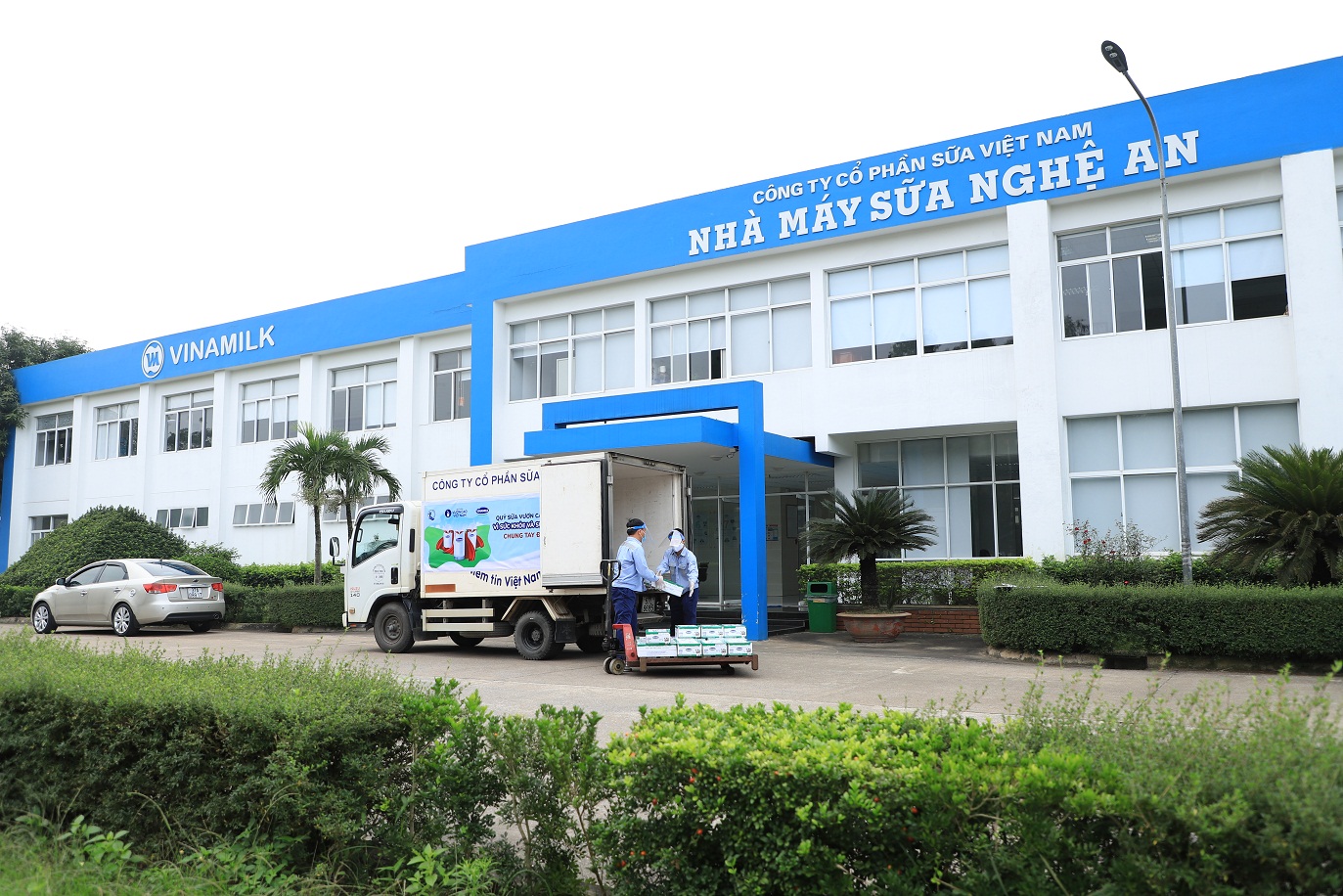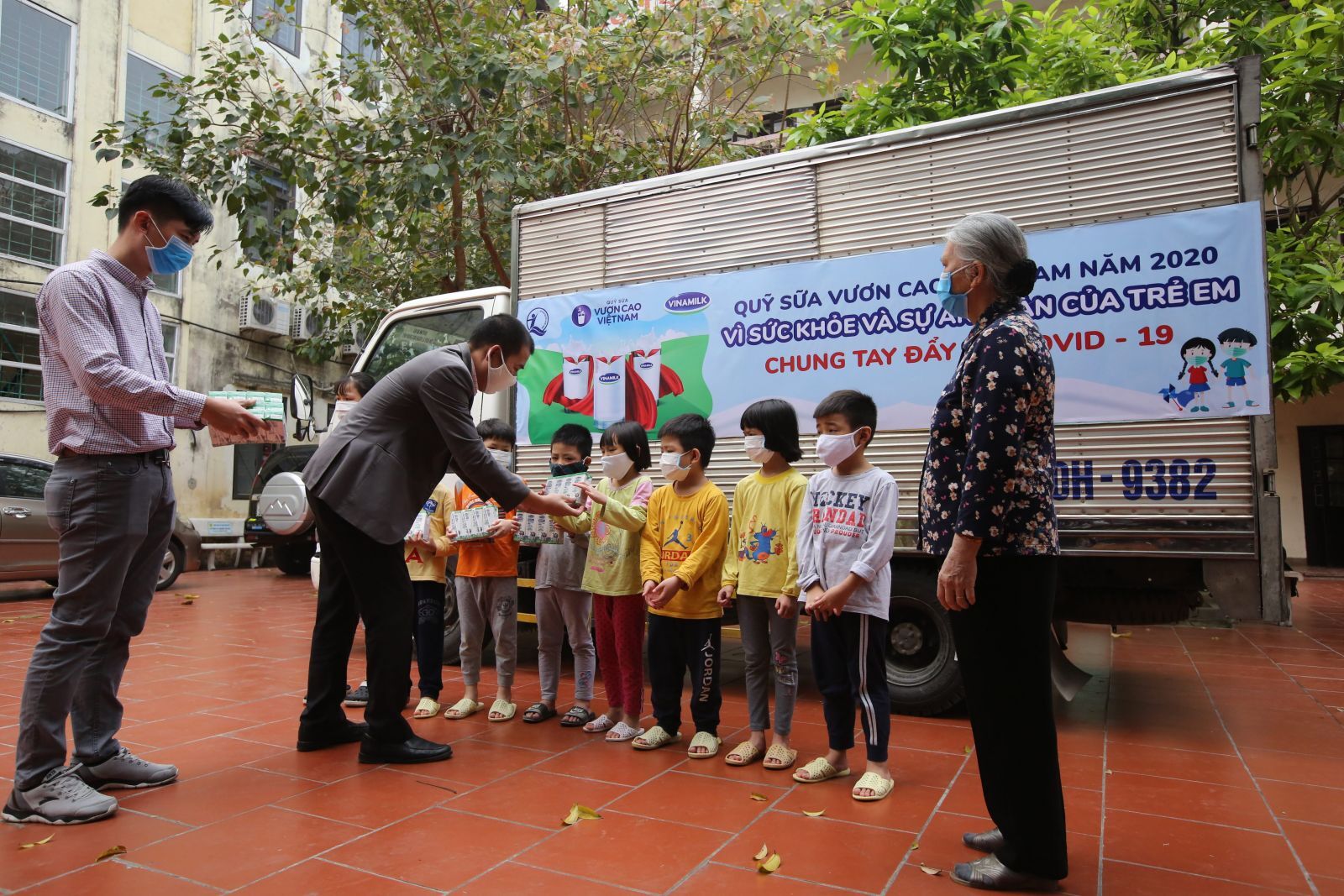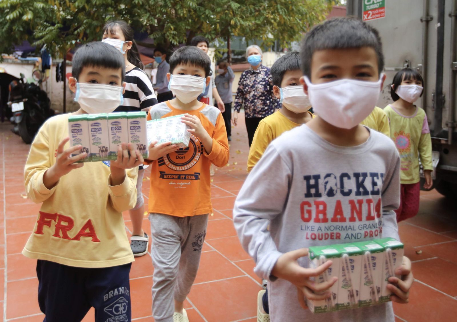Xe chở sữa của Vinamilk với thông điệp "Vì sức khỏe và an toàn cho trẻ em - Chung tay đẩy lùi COVID-19", mang sữa đến với các trung tâm, mái ấm nuôi dạy trẻ tại Hà Nội, Nghệ An và TP.HCM ...