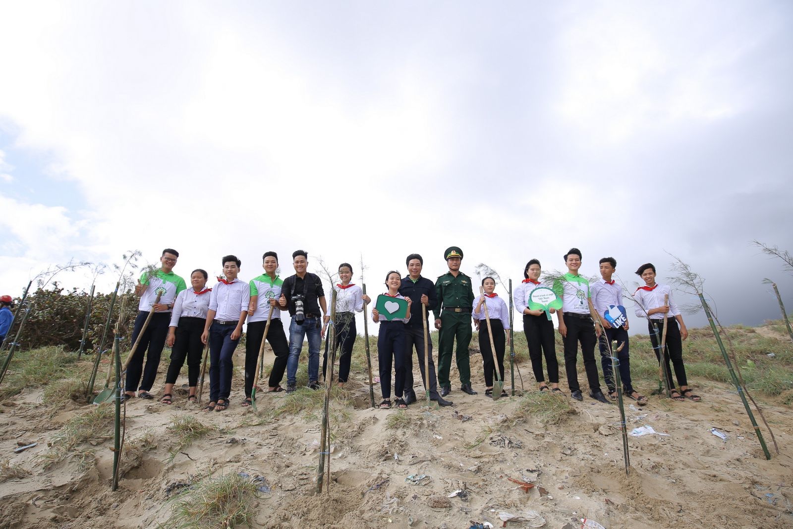Các em học sinh, các bạn đoàn viên thanh niên tỉnh Bình Định cùng trồng cây phi lao dọc bờ biển trong chương trình Quỹ 1 triệu cây xanh cho Việt Nam.