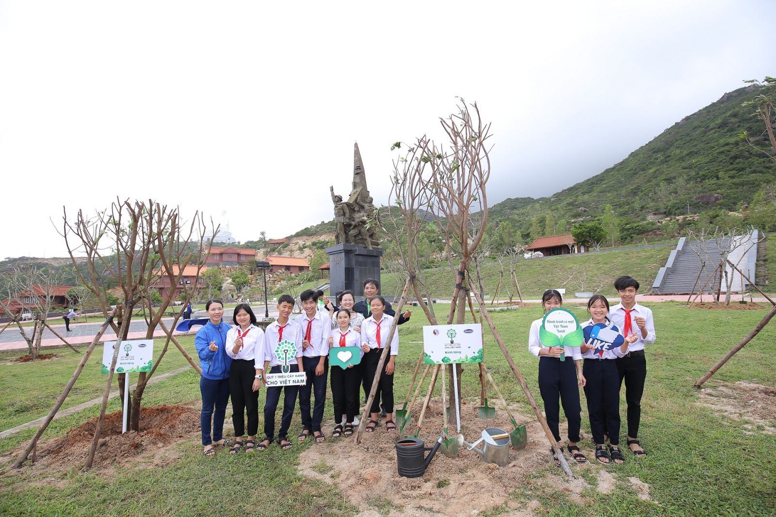 Các em học sinh và đoàn thanh niên tỉnh Bình Định tham gia trồng cây, chung tay bảo vệ môi trường tỉnh Bình Định.