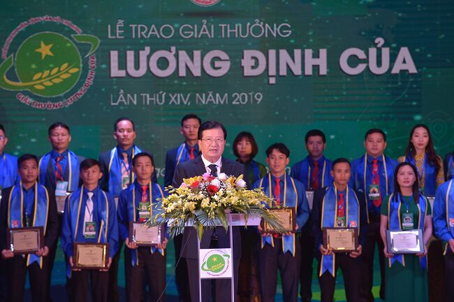 Thay mặt Chính phủ, Thủ tướng Chính phủ, Phó Thủ tướng Trịnh Đình Dũng ghi nhận và biểu dương thành tích xuất sắc của những tấm gương tiêu biểu được trao Giải thưởng Lương Định Của năm 2019.