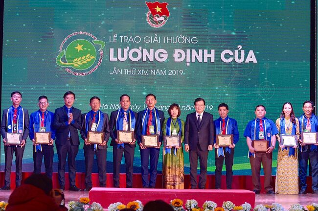VNHN- Tối 19/12, tại Hà Nội, Ban Chấp hành Trung ương Đoàn Thanh niên Cộng sản Hồ Chí Minh đã tổ chức trao Giải thưởng Lương Định Của năm 2019. Đó là những thanh niên Việt Nam tuổi từ 18 đến 35, trực tiếp lao động, sản xuất trong lĩnh vực phát triển nông nghiệp, nông thôn.