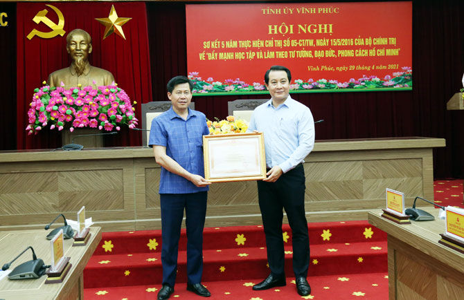 Sáng 29/4, Tỉnh ủy Vĩnh Phúc tổ chức hội nghị sơ kết 5 năm thực hiện Chỉ thị số 05 của Bộ Chính trị về “Đẩy mạnh học tập và làm theo tư tưởng, đạo đức, phong cách Hồ Chí Minh” dưới sự chủ trì của các đồng chí: Phạm Hoàng Anh, Phó Bí thư Thường trực Tỉnh ủy; Bùi Huy Vĩnh, Ủy viên BTV Tỉnh ủy, Trưởng Ban Tuyên giáo Tỉnh ủy.
