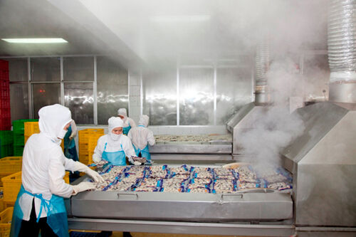 Dây chuyền đóng gói tại một nhà máy sản xuất thực phẩm