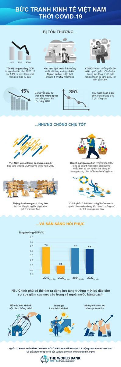 Theo WB, kinh tế Việt Nam, dù bị ảnh hưởng nghiêm trọng bởi Covid-19, vẫn chịu đựng tốt và sẽ phục hồi.