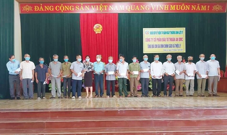 Theo đó, nhằm tiếp nối truyền thống tốt đẹp của dân tộc Việt Nam trong việc “đền ơn đáp nghĩa” “uống nước nhớ nguồn” đối với những đóng góp và hy sinh to lớn của các anh hùng, thương binh, liệt sĩ và người có công trong cuộc kháng chiến bảo vệ Tổ quốc. Công ty cổ phần đầu tư Thuận An DMC đã phối hợp với Tòa soạn Việt Nam Hội Nhập, Cơ quan đại diện Bắc Trung Bộ, trao tặng 170 suất quà, mỗi suất trị giá 300 nghìn đồng cho 170 đối tượng là người có công với cách mạng trên địa bàn xã Thiệu Lý, huyện Thiệu Hóa.