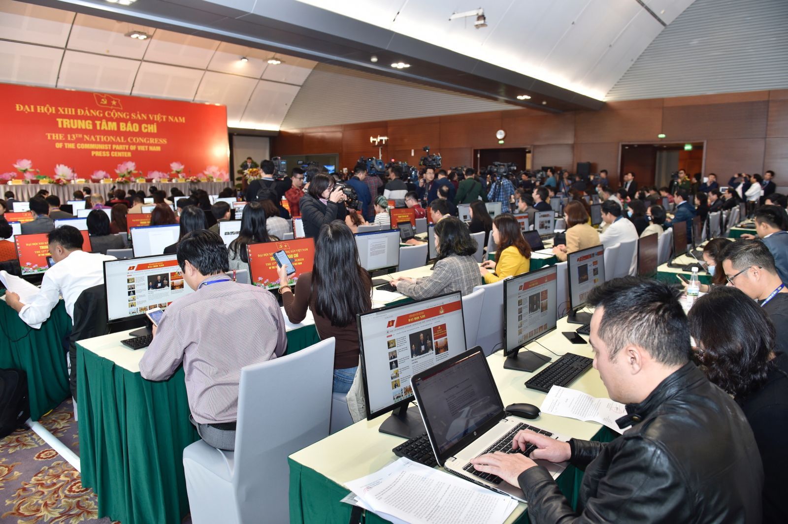 Báo chí tác nghiệp tại Trung tâm Báo chí Đại hội XIII