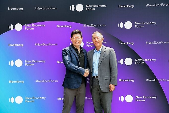 Ông Antothy Tan - đồng sáng lập Grab cùng đại diện Hyundai Motor Group trong vòng gọi vốn đầu tháng 11