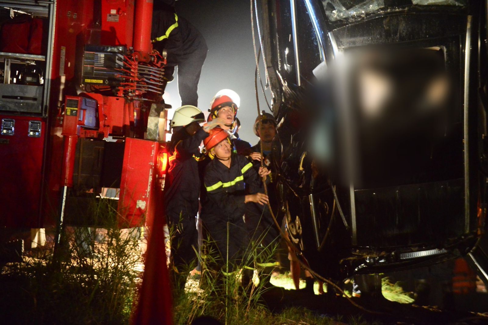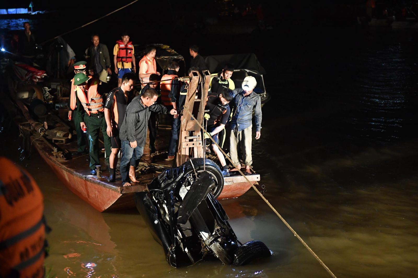 Do lực va chạm rất mạnh với thành cầu, toàn bộ phần đầu xe bị biến dạng. Đến khoảng 2h sáng, lực lượng chức năng vẫn tiếp tục kéo chiếc xe lên vì xe có trọng tải khá nặng nên việc trục vớt gặp khó khăn. 2h30, 2 thi thể nạn nhân lần lượt được đưa ra ngoài, cho lên cáng và chuyển lên xe cấp cứu.