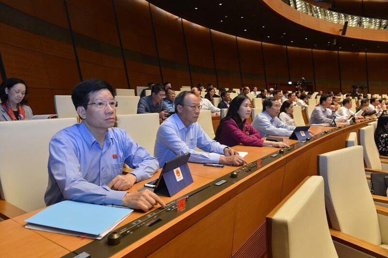 Các đại biểu QH ấn nút thông qua Nghị quyết xóa bỏ khoản nợ thuế 43.000 tỷ đồng không còn khả năng nộp ngân sách từ ngày 1/7/2020. (Ảnh: VGP)