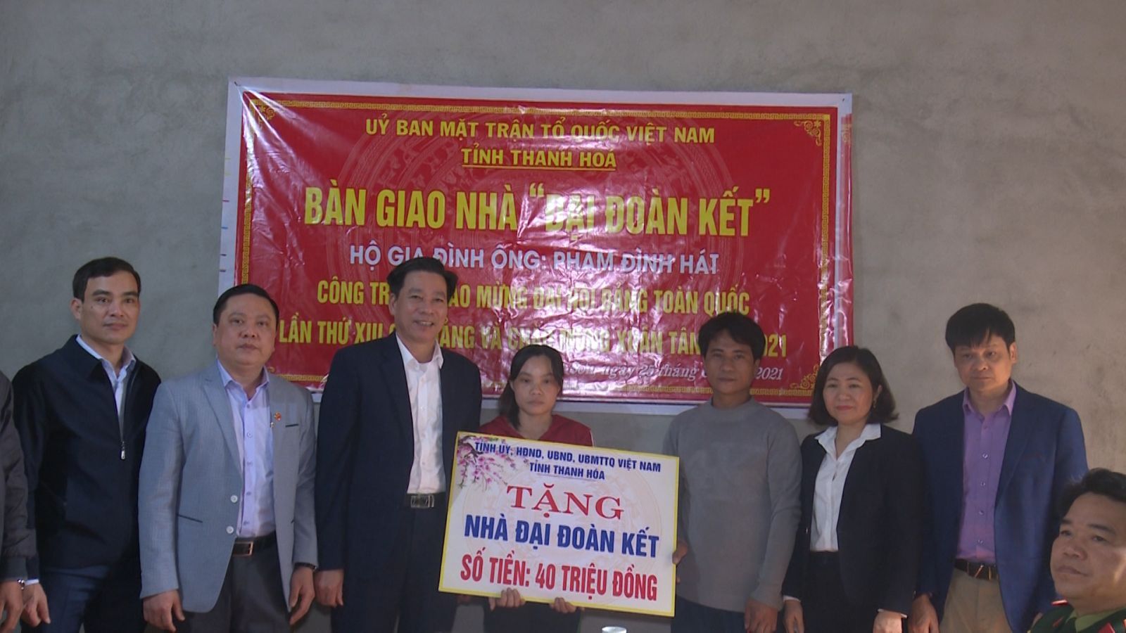 Đồng chí Phạm Bá Oai, Tỉnh ủy viên, Phó Chủ tịch HĐND tỉnh cùng lãnh đạo huyện Triệu Sơn trao tiền hỗ trợ làm nhà đại đoàn kết cho gia đình anh Phạm Đình Hát xã Bình Sơn