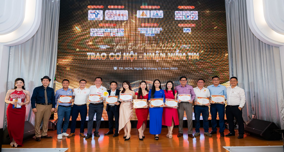 Bên cạnh là 6 nhà tài trợ Vàng là Công ty CP Tập đoàn VinaTech Việt Nam, Công ty TNHH Cách nhiệt WIN, Công ty Cổ phần Sản xuất biến thế HBT Việt Nam, Công ty Cổ phần Công nghệ Nhật (Japan Window) và Công ty TNHH TM - DV Nam Lộc và Công Ty TNHH Đạt Vĩnh Tiến. Ngoài tài trợ chính, kim cương và vàng, nhiều đơn vị doanh nghiệp cũng tin tưởng góp sức cùng Year End Party CBSC 2023 gồm 10 nhà tài trợ Bạc, 11 nhà tài trợ đồng hành và đơn vị thực hiện và truyền thông - Công ty Nhất Kiến Văn.