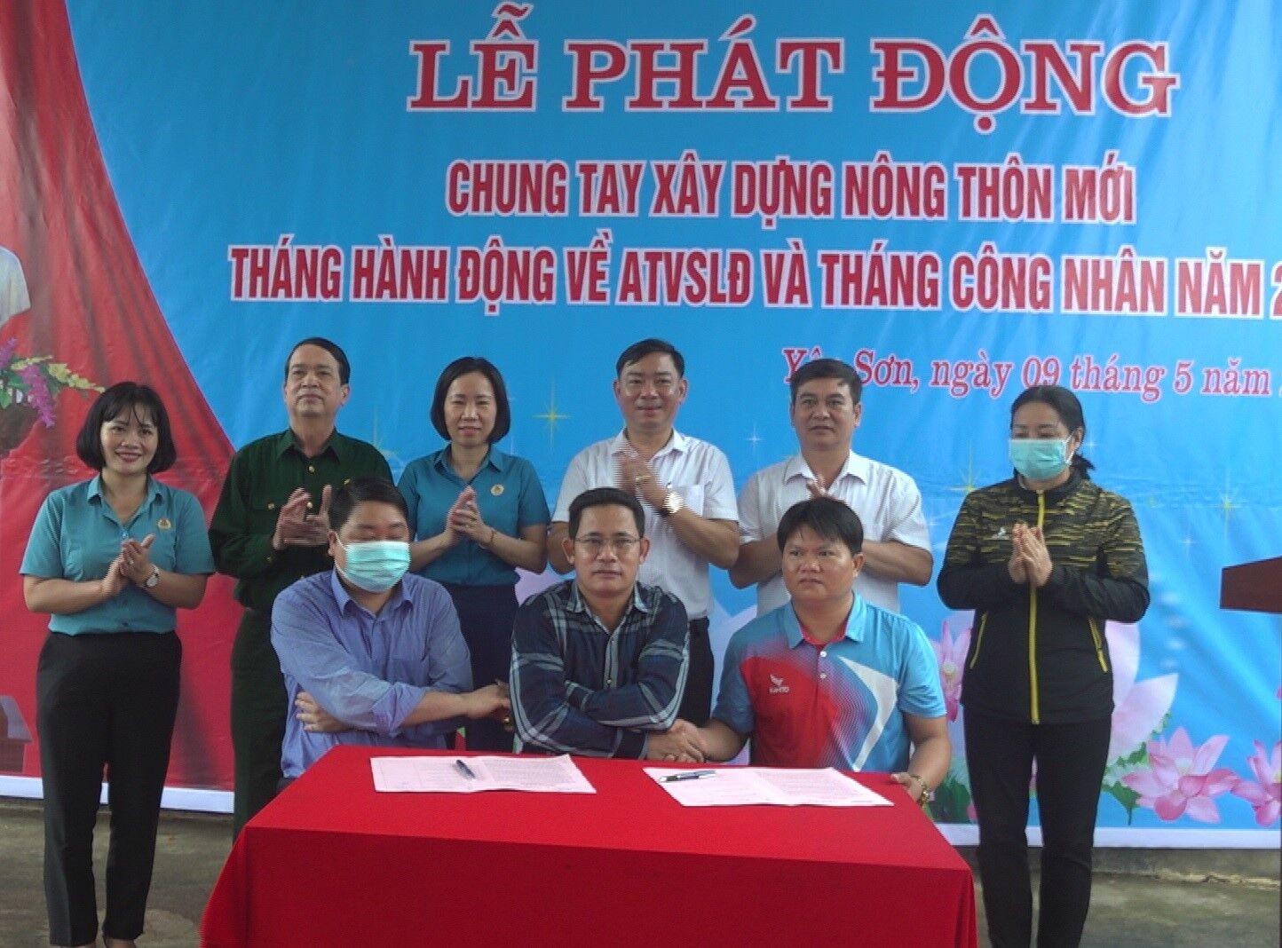 Tại lễ phát động, Thường trực Đảng ủy, HĐND, UBND, UB MTTQ và các tổ chức chính trị - xã hội, Khối cơ quan trên địa bàn xã, các Chi bộ, thôn bản đã tiến hành ký giao ước thi đua thực hiện xây dựng Nông thôn mới năm 2022. Liên đoàn Lao động huyện đã tặng 12 tấn xi măng (trị giá 15 triệu đồng) do các CĐCS trên địa bàn huyện vận động ủng hộ hỗ trợ 03 hộ nghèo trên địa bàn xã Yên Sơn sửa chữa nhà.